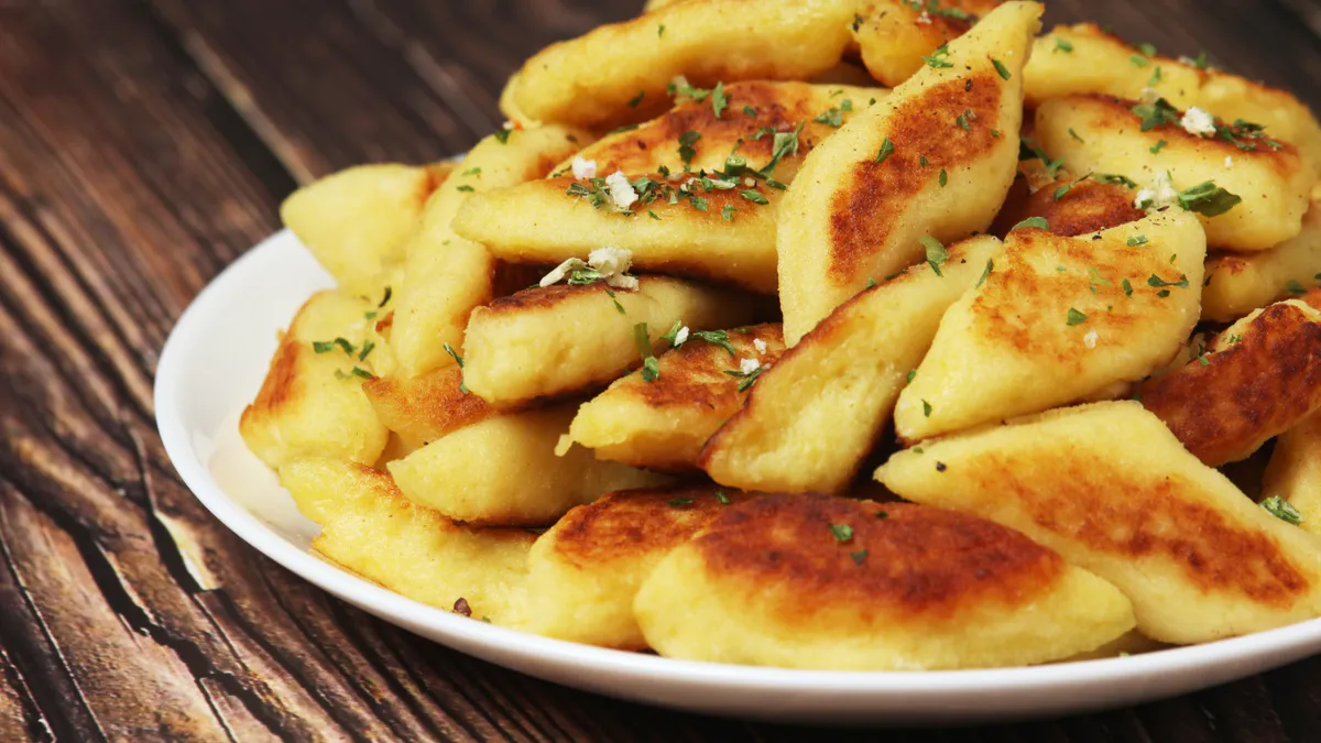 So zubereitete Kopytka sind locker und zerfallen nicht. Du kannst sie sofort servieren oder für eine goldbraune Kruste anbraten.