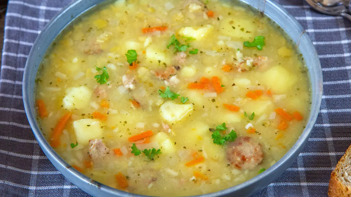 Rezept für eine aromatische Gerstensuppe mit Wurst